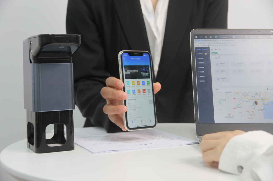云璽云智能印章通用適配市場上現(xiàn)有98%的傳統(tǒng)實(shí)物印章,在實(shí)物印章章體外置智能物聯(lián)網(wǎng)終端保護(hù)裝置,該裝置一體式集成4G智能模組、指紋模塊、鎖控模塊、攝像頭等,其設(shè)備工作原理: