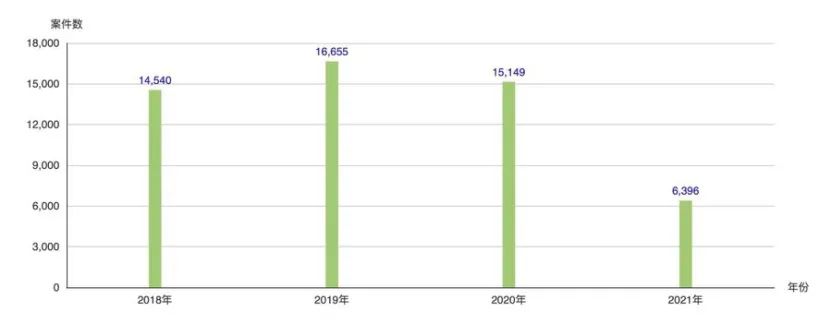 圖1.2018~2021年對(duì)應(yīng)案件數(shù)據(jù)圖(來源:網(wǎng)絡(luò))