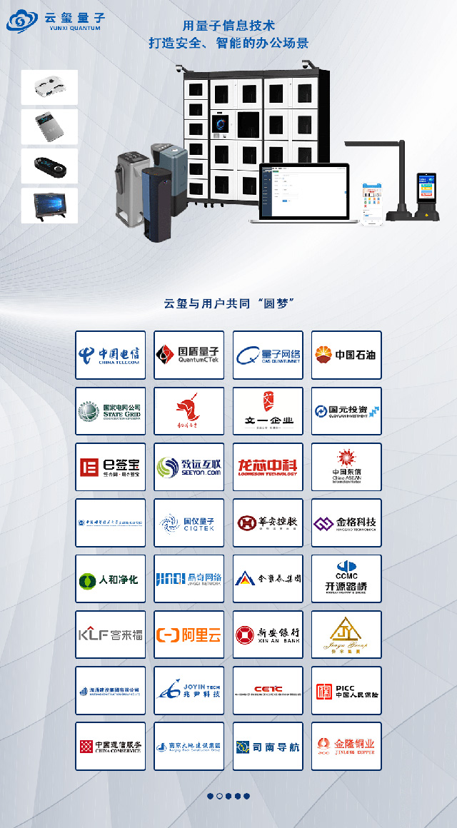 在信創(chuàng) 領(lǐng)域,云璽量子一直堅(jiān)持貫徹國 家所確定的在科技創(chuàng)新層面的戰(zhàn)略目標(biāo),自2016年起開始布局科技創(chuàng)新辦公產(chǎn)品系列,致力于將自主可控量子安 全技術(shù)賦能企事業(yè)辦公,主營量子安 全智能辦公系統(tǒng)與終端、量子安 全智能印簽管理系統(tǒng)與終端。