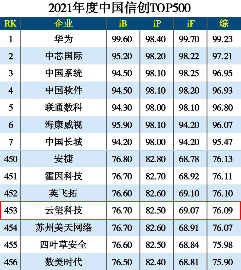 《2021中國(guó)信創(chuàng)500強(qiáng)》云璽入榜!近日,由中國(guó)科學(xué)院《互聯(lián)網(wǎng)周刊》、eNet研究院、德本咨詢(xún)權(quán)威發(fā)布的《2021中國(guó)信創(chuàng)500強(qiáng)》名單發(fā)布,該名單是基于iB(iBrand考察口碑,尤其是業(yè)內(nèi)口碑)、iP(iPower考察從過(guò)去到當(dāng)前的規(guī)模類(lèi)狀況,代表所積累迄今的運(yùn)營(yíng)實(shí)力)、iF(i…