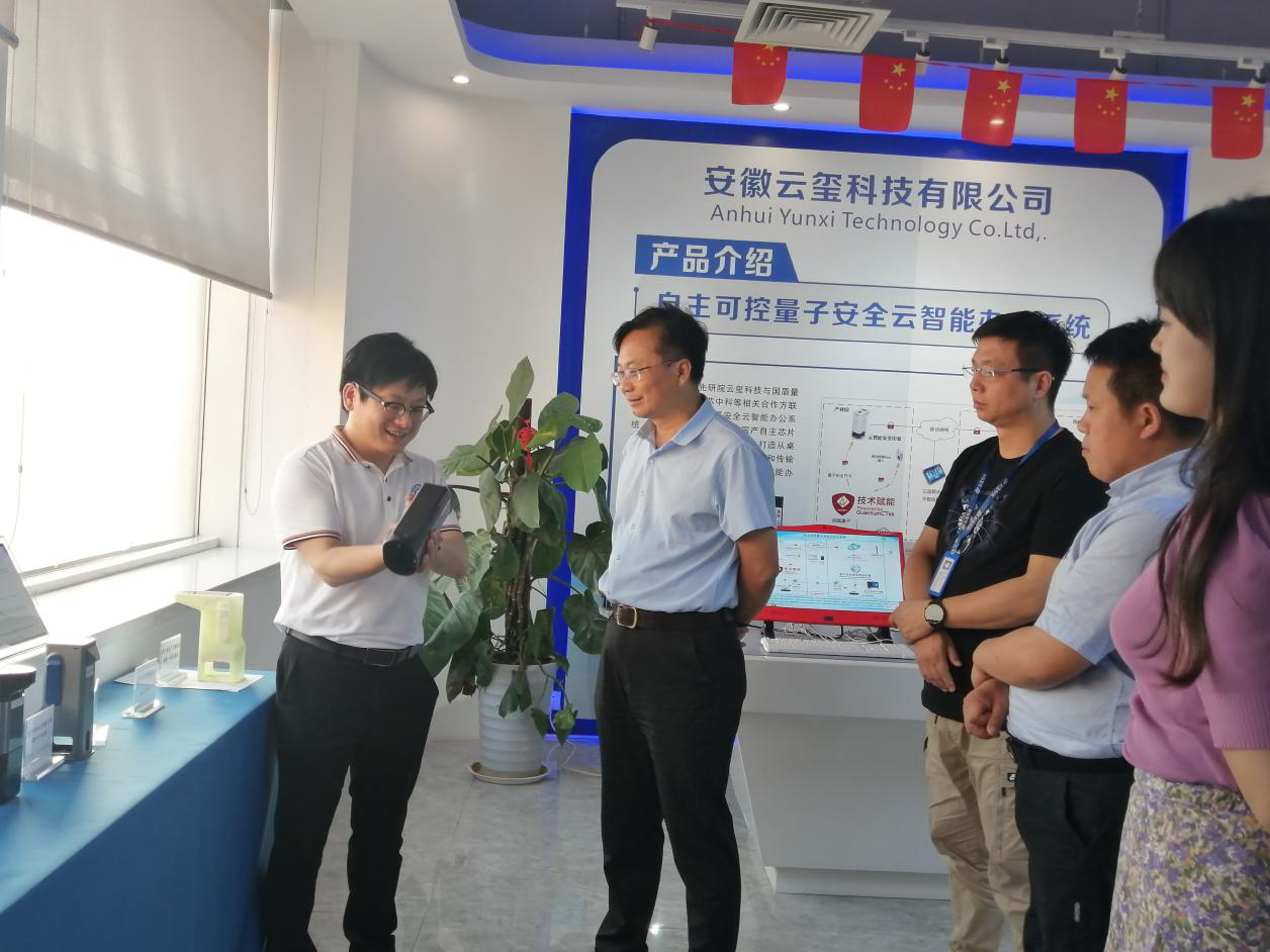 6月29日,安徽省經(jīng)信廳總經(jīng)濟(jì)師潘峰、安徽省經(jīng)信廳產(chǎn)業(yè)信息化副處長(zhǎng)宮純文蒞臨安徽云璽科技指導(dǎo)交流。公司董事長(zhǎng)童迎偉、執(zhí)行總經(jīng)理鮑習(xí)宏熱情接待,詳細(xì)匯報(bào)了量子安全技術(shù)創(chuàng)新應(yīng)用情況和產(chǎn)業(yè)化進(jìn)展。未來(lái),云璽科技將始終如一,致力于量子安全技術(shù)創(chuàng)新和應(yīng)用的發(fā)展,為政企客戶打造更好更安全的量子安全…